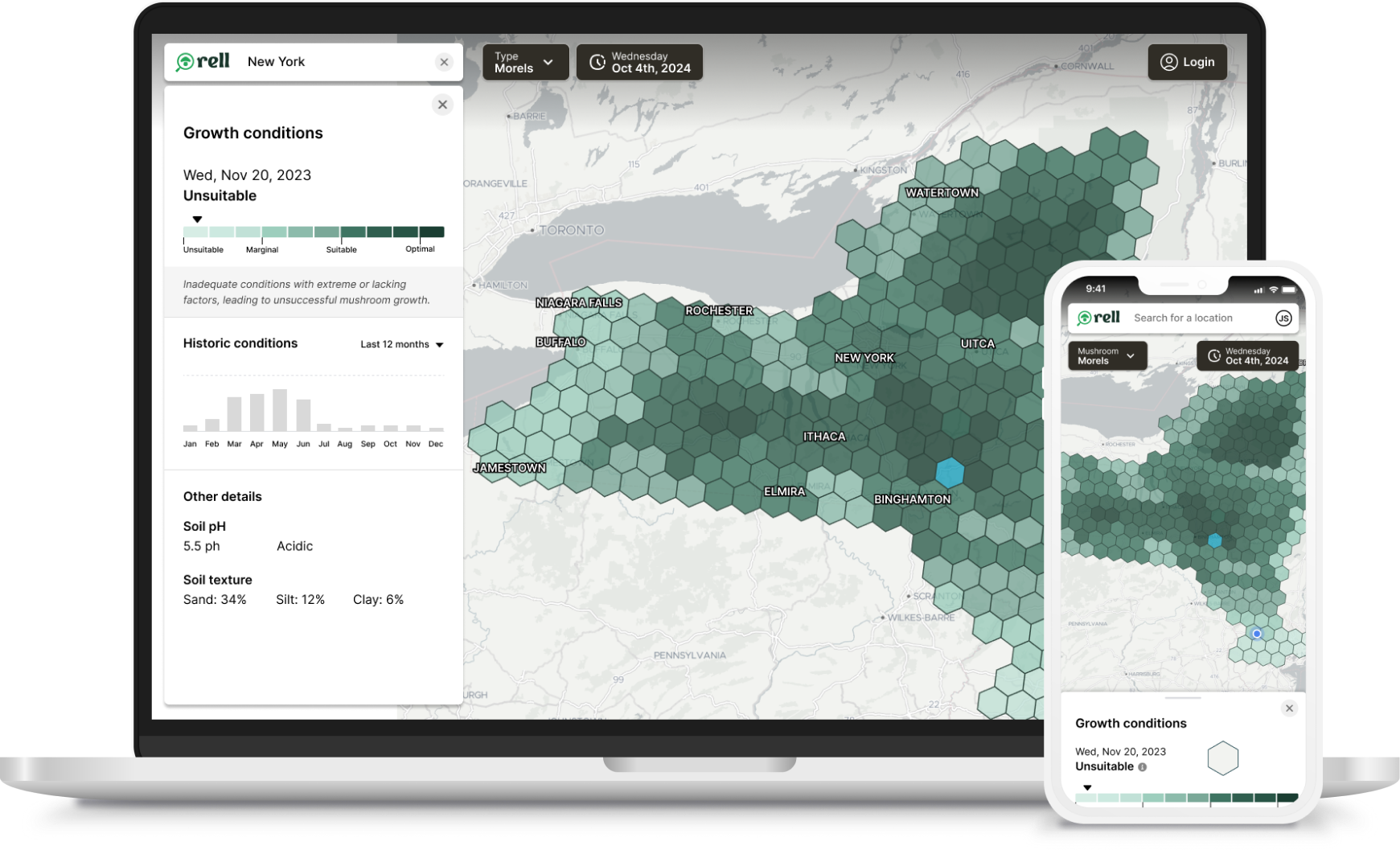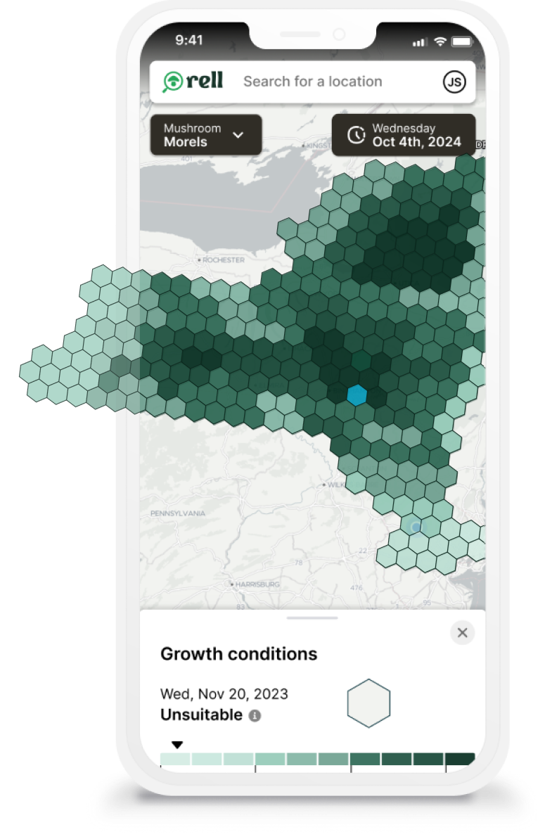 Using advanced weather data and machine learning insights, Rell guides you to the best spots for Morels, Chanterelles, and more.